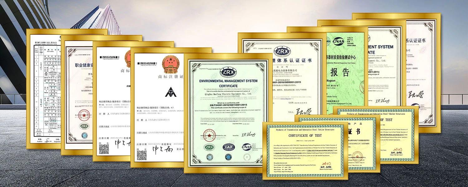Firma ma dojrzałą technologię produkcji i przetwarzania oraz doskonałą zapewnianie jakości, z 《《220 kV Linia linii przesyłowej licencji produkcyjnej》, 《Krajowa licencja produkcji produktów przemysłowych》, 《220KV Certyfikat jakości rur stalowych》 i 《500 kV Stal Ripe Certyfikat jakości wieży》 Wydany przez ogólną administrację ogólnej administracji jakości, inspekcji i kwalifikacji.